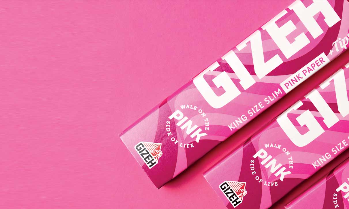 Three lines of rolling papers are available: GIZEH Black, the top seller; GIZEH Unbleached, which emphasizes sustainability as they are made from only natural and organic fibers; GIZEH Pink, this year's novelty aimed at Gen Z, made in pink to move away from gender binary stereotypes.